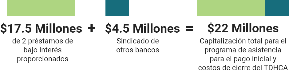 Este capital de la DPA ayudó a reducir los costos hipotecarios generales de los residentes a tasas inferiores a las del mercado, lo que hizo que las viviendas fueran aun más asequibles, al tiempo que garantizaba una vivienda segura y digna para miles de residentes de Texas. Woodforest se enorgullece de haber sido la fuerza motriz para garantizar que nuestro limitado capital impulsara directamente los resultados, ayudara a crear un financiamiento más asequible y permitiera que residentes de Texas de ingresos bajos a moderados compraran su primera vivienda.