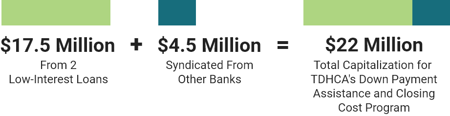 This down payment assistance capital helped drive residents' overall mortgage costs to below-market rates, thus making affordable housing more affordable, while ensuring safe and decent housing for thousands of Texas residents. Woodforest is proud to have been the driving force to ensure our limited capital directly drove results, helped create more affordable financing, and helped first-time LMI Texans become homeowners.